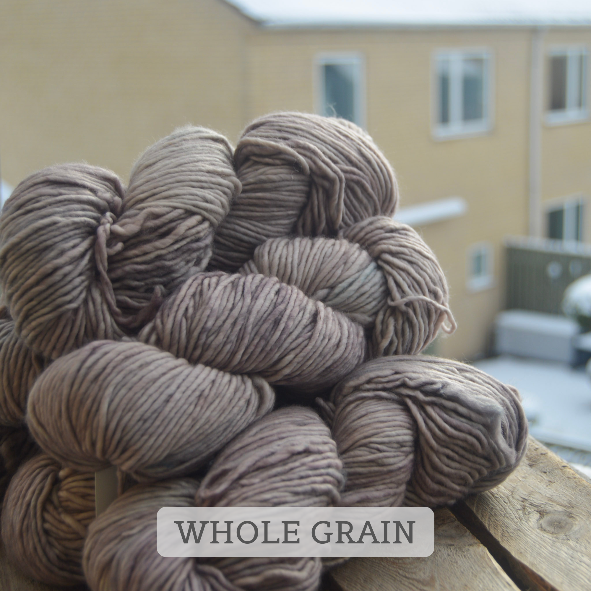 Malabrigo Mecha håndfarves i små omgange af 10 fed. Sørg for at købe nok garn til hele projektet med det samme, og jeg skal bestræbe mig på at udvælge fed, der matcher hinanden. Selv i samme farvning kan der stadig være nuanceforskelle. Jeg anbefaler at strikke større ensfarvede projekter skiftevis fra 2 forskellige garnnøgler, for at undgå at farveforskellene er tydelige.