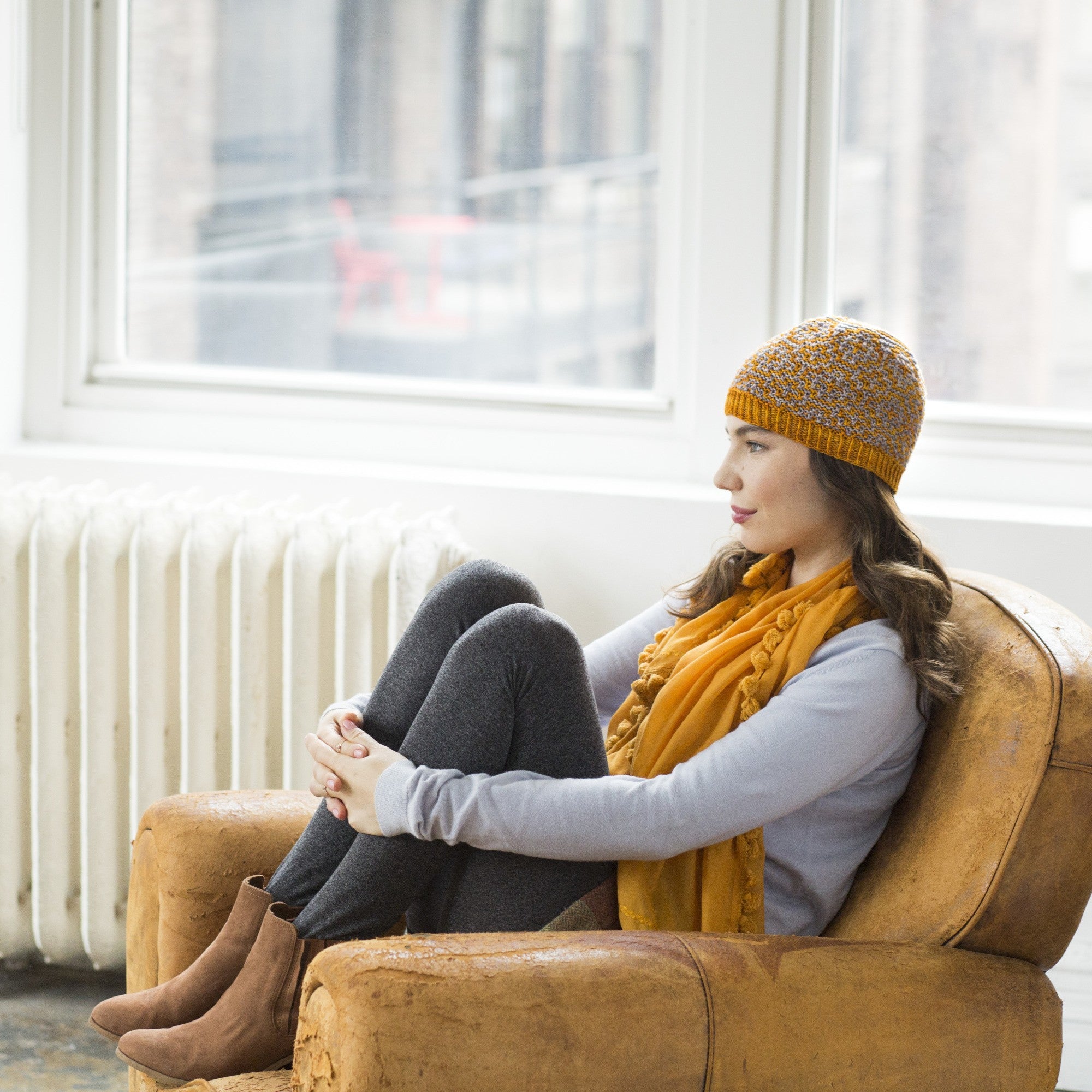 Du skal bruge 2 kontrastfarver i garnet Malabrigo Arroyo, eller et tilsvarende garn, ca. 50 gram af hver. Garnet er håndfarvet og spundet firetrådet i 100% merinould. Arroyo løber 306 meter per 100 gram (vægtklassen DK/sport).